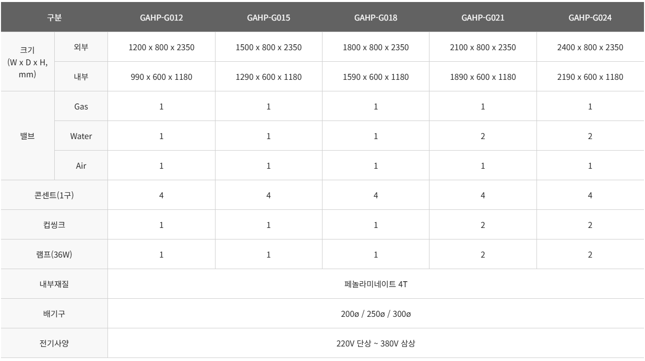 목록 GTSCIEN 알루미늄 상부형 흄후드 Description · 안전한 전처리 작업이 가능한 배기형 흄후드 제품 문의하기 카탈로그 보기 제품소개 규격표 주문정보표 본문 알루미늄 프로파일 일체형 흄후드 화학물질을 이용한 모든 실험을 상부형 흄후드에서진행함으로써 안전한 실험 환경을 제공합니다.튼튼한 아름다움, 알루미늄 프레임Anodizing 표면처리를 통해 경도가 높고 내화학성이뛰어나고 독창적인 웨이브 프로파일 디자인이 적용되어미려한 외관으로 편안한 실험 환경을 제공해줍니다.편의성 높은 인체공학적인 디자인Operation valve 등의 컨트롤이 사용자 중심의 각도로좌우 측면에 제작되어 최적의 제어가 가능합니다.후드 내 오염 공기에 대한 내구성과 배기성능 강화⊙ 효율성- By Pass Louver를 통해 유입기류의난기류화를 억제하여 배기 능력 강화- Baffle plate 구조로 후드 내 공기를 효과적 배기⊙ 안전성- 내약품성, 내열성, 내부식성 재질로 안전- 작업 조건에 맞추어 슬라이딩 도어로 안전 실험 가능- 안전 커퍼 콘센트로 실험 시 액체유입 등의위험적 요소로부터 전기 사고 예방선택의 다양성 제공⊙ 다양성- 실험 환경 및 사용자의 편의에 맞추어선택 가능하도록 다양한 형태 제공 이전글알루미늄 워크인 흄후드 25.09.08 다음글알루미늄 일체형 흄후드 25.09.08